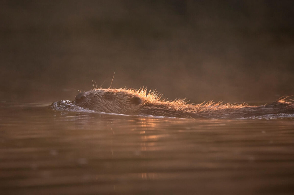 European beaver (Castor fiber) swimming in river, © naturepl.com / Wild Wonders of Europe / Cairns / WWF